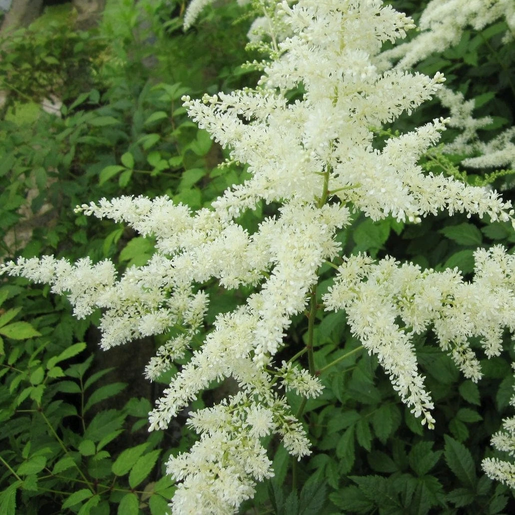 - Elegant plumes of snow white feathery flowers emerging from delicate fern-like leaves
