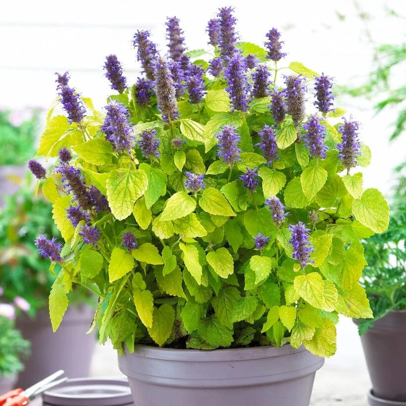 - Compact spires of rich violet blue flowers, rising from licorice-scented foliage