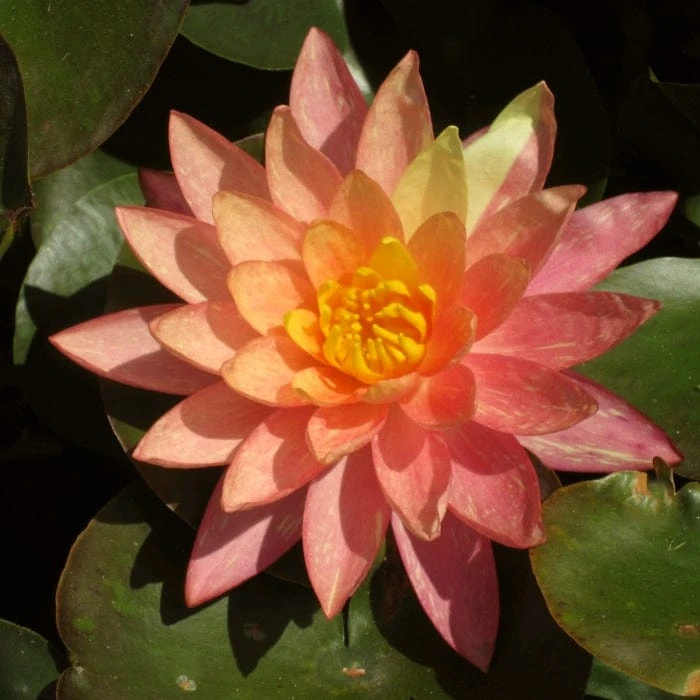 - A unique waterlily with a variegation that has never been seen before in a hardy waterlily – each flower is unique in its pattern! On some, the petals can be a fully flecked mix of bright pink and creamy yellow, while on others, the variegation can produce flowers that are half cream and half peach.Â