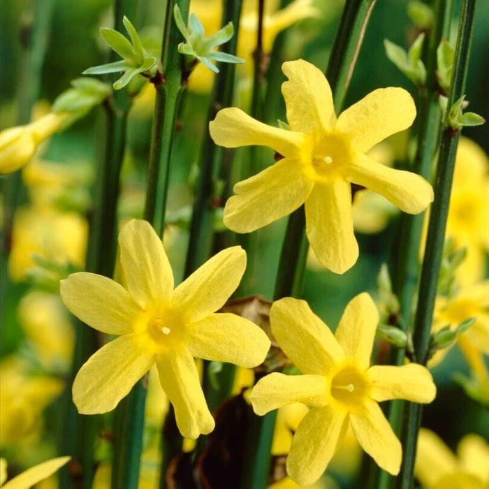 - Winter Jasmine produces sunshine yellow flowers on fresh green stems in the depths of winter and right through to early spring